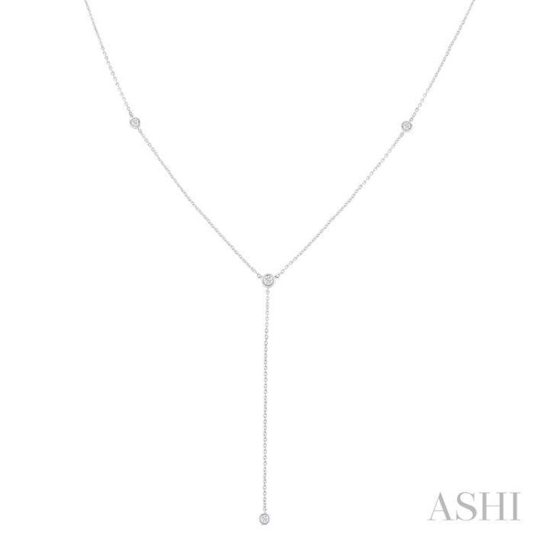 1/4 Ctw Bezel Set Round Cut Diamond Y-Shape Lariat Station Necklace in 14K White Gold