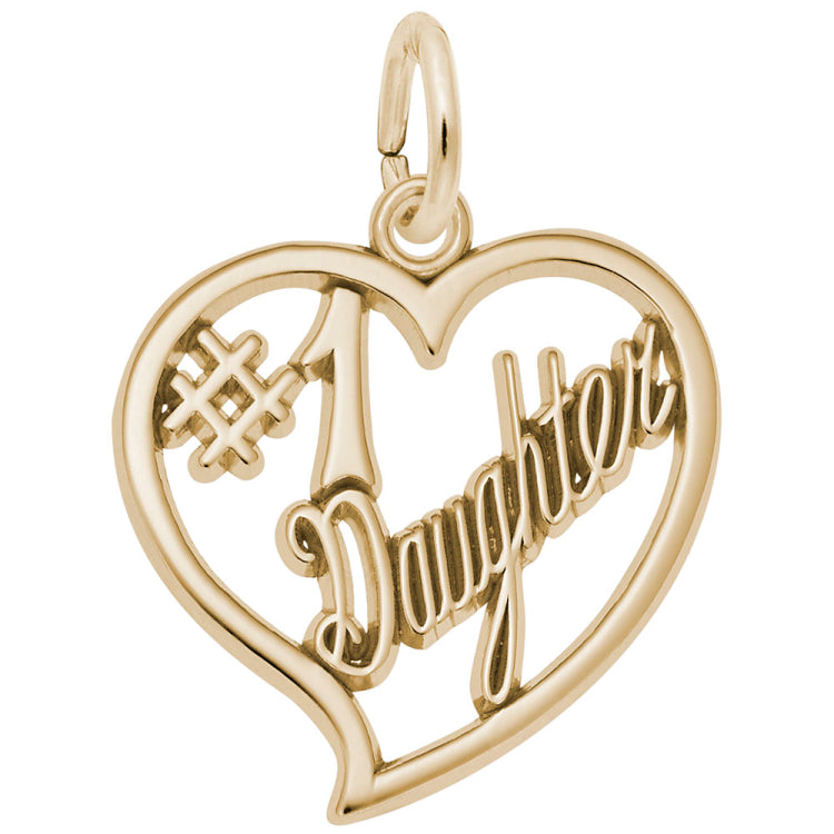 Express your love of family with the Number One Daughter Charm. It's a perfect gift from mom or dad. This heart shaped charm is available in silver and gold.